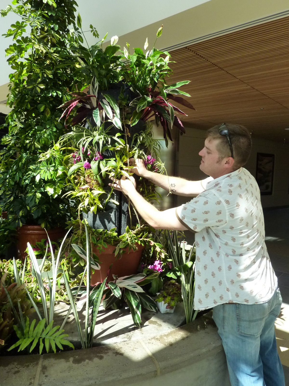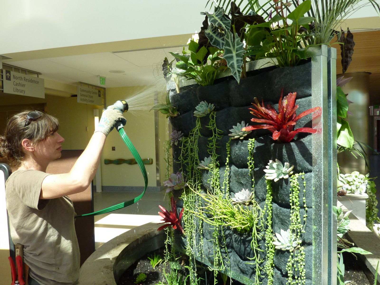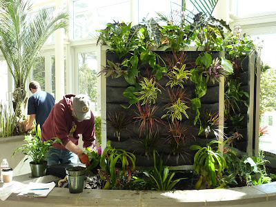 John Alexander and team from Community College San Francisco continue to assemble the vertical garden installation at Laguna Honda Hospital. The grand opening for the new construction is a week away; Saturday, June 26th.