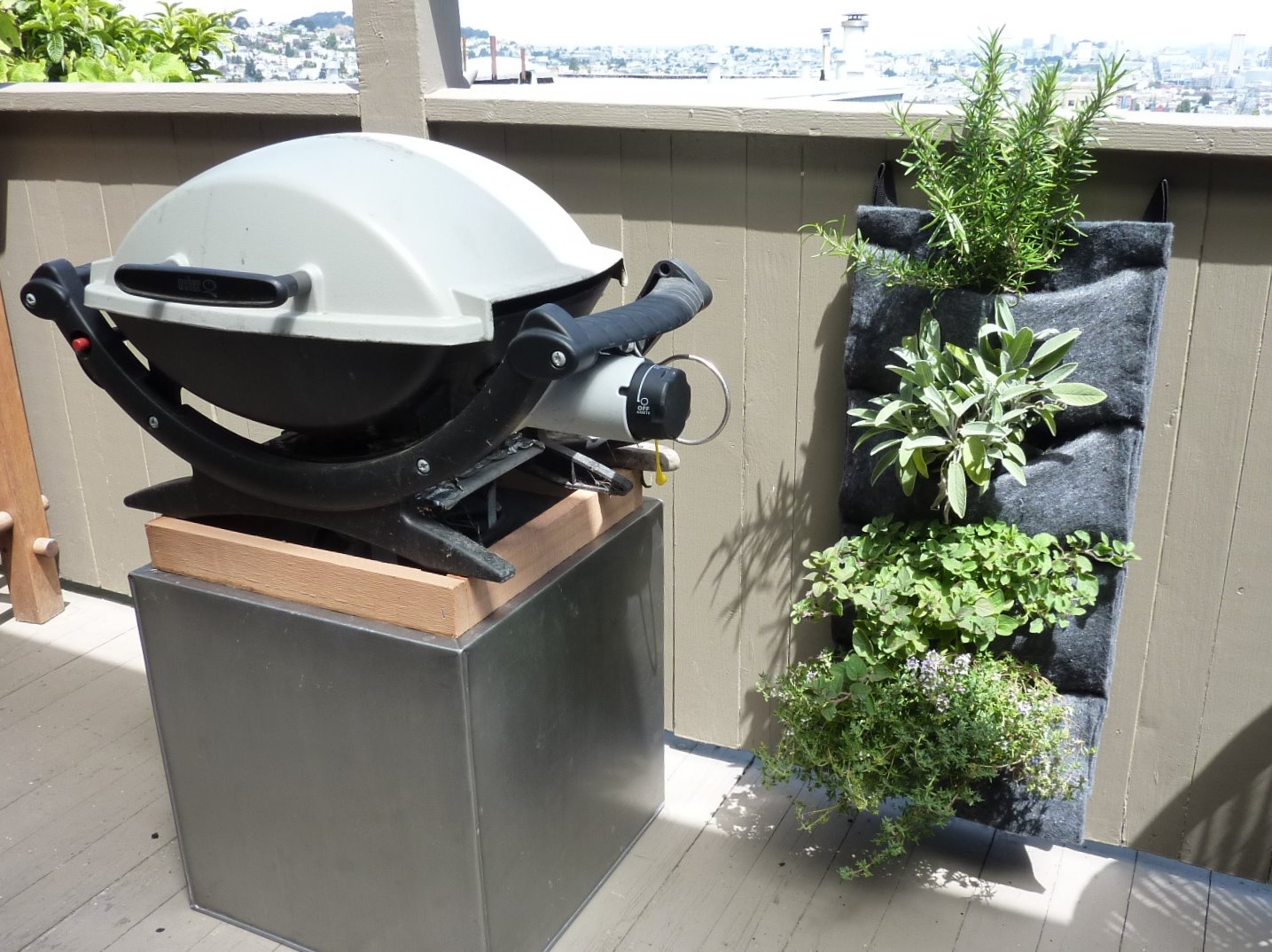 It's wonderful to have the convenience of fresh herbs on my patio, especially by the grill. They like to be watered every 3 days or so and I use a little MaxSea fertilizer in the watering can. MaxSea is a natural seaweed based fertilizer that is gentle, easy to use, and very inexpensive, and you only need just a little. The herbs are in root wrappers so I can change them out when I need to. You get used to the watering so it doesn't drip off the bottom too much. Mostly the felt absorbs the water they need and herbs tend to like dryer soil. Growing here from top to bottom: Rosemarry, Sage, Oregeno, and Thyme.
