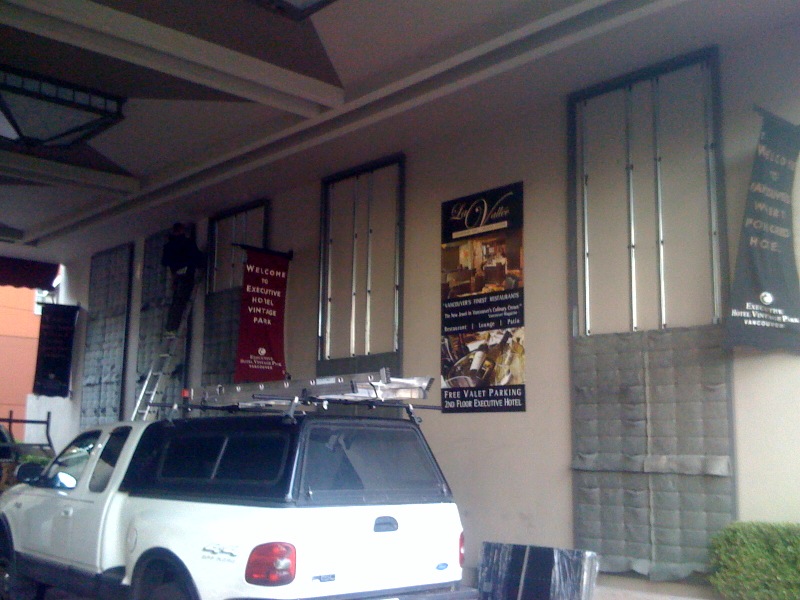 Joel Franske, landscape designer, installs 5 FLORAFRAME Living Wall Systems (64" x 192") for Executive Hotels, Vancouver, Canada. Total 426 square feet.