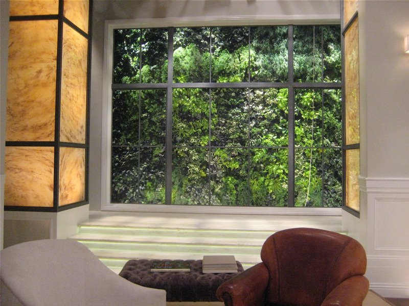 Looking closer at Trish O-Sullivan's living wall design for the Nate Berkus Show set you can see how she made flowing areas that cross into each other. When the plants grow in and you stand back it makes it look like your looking through the window onto a terraced hillside. Contact Trish to help with your living wall designs. Trish O'Sullivan design group, eco floral design, New York City. (917) 328-4893
