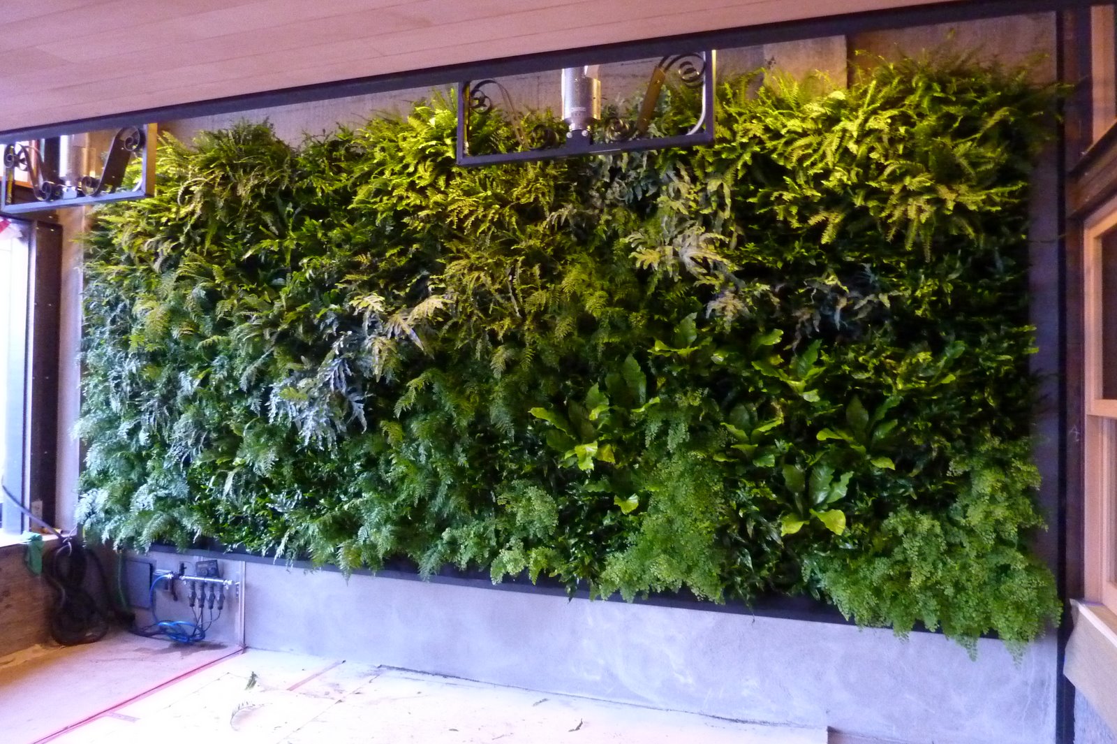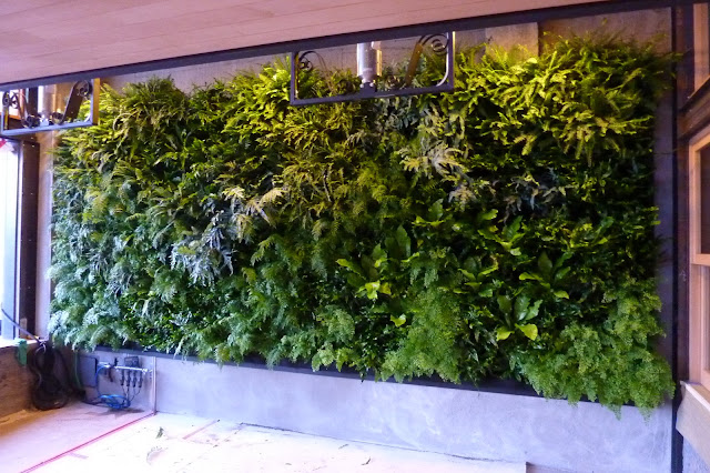 PlantsOnWalls began the fern wall planting of 320 ferns onto the Florafelt panels. Nine varieties of ferns were placed in the wall to determine the rough layout. Plants are pre-root-wrapped at the greenhouse before arriving on the installation site so we could focus solely on creating a masterpiece. In a half-day we had the entire wall planted including some re-arranging to get it just right. Come visit the fern wall at Urban Bistro's open air patio located off Burlingame Ave, at 270 Lorton in Burlingame, California map. Grand opening March 25th.
