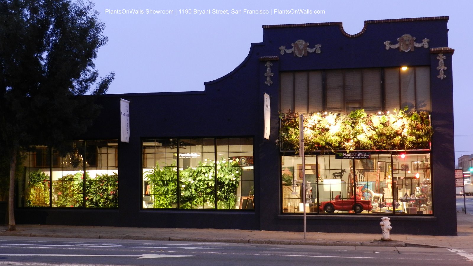 PlantsOnWalls Showroom is at 1190 Bryant in San Francsco at 10th Street across from Costco. Stop by and have a look at our living walls. Tel: (415) 658-5498.