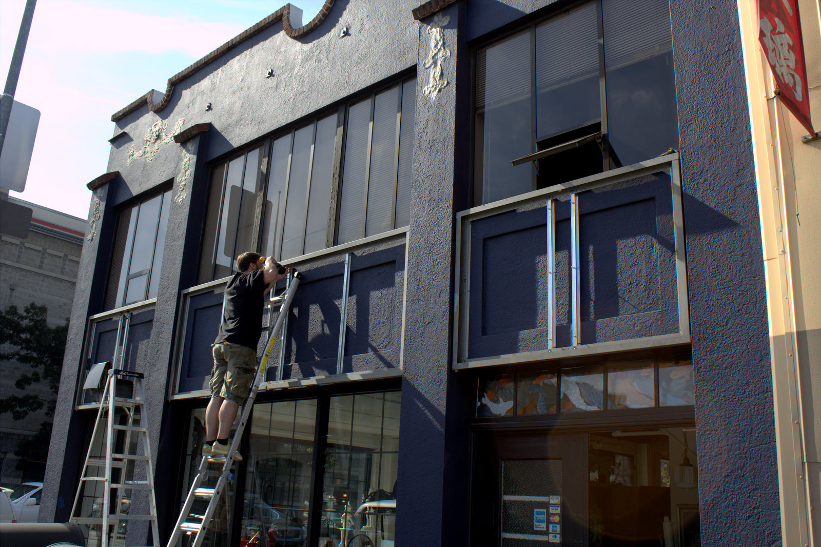 The South-East facade received new custom sized living wall kits to complete the wrap-around frieze that is to be filled with a planting design. The new kits were done in matte grey galvanized frames with recycled grey Florfelt panels. The kits were custom sized to fit perfectly between the columns. In the next weeks the plumbing will be connected and the living walls will be filled with plants.